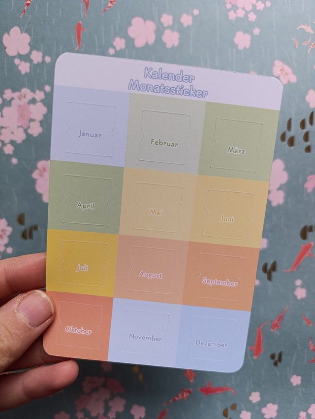 12 Sticker passend für die 12 Monate des Jahres.